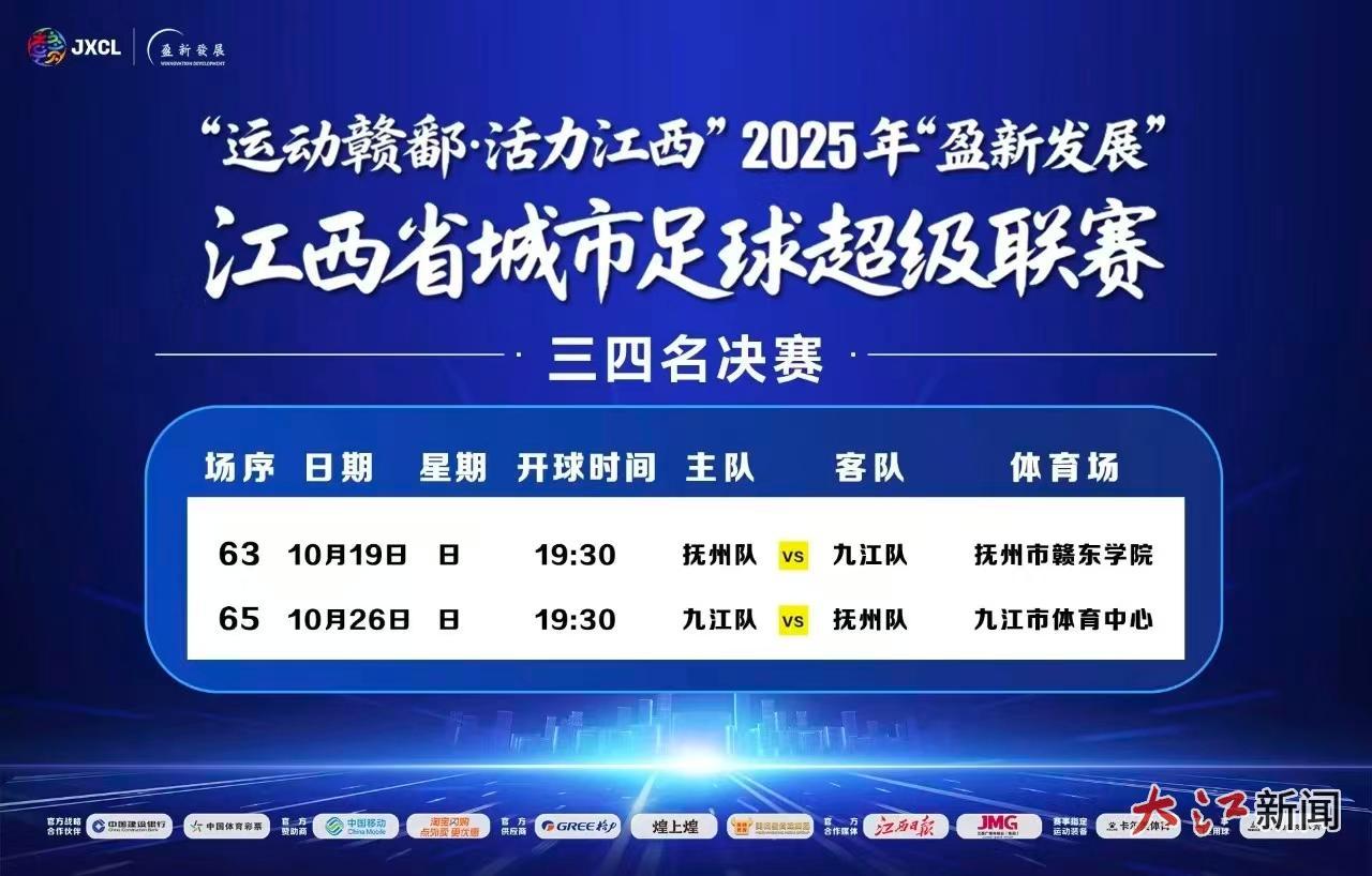 三四名决赛方面,10月19日,抚州队将在抚州市赣东学院迎战九江队;10月26日,九江队将在九江市体育中心主场对阵抚州队。