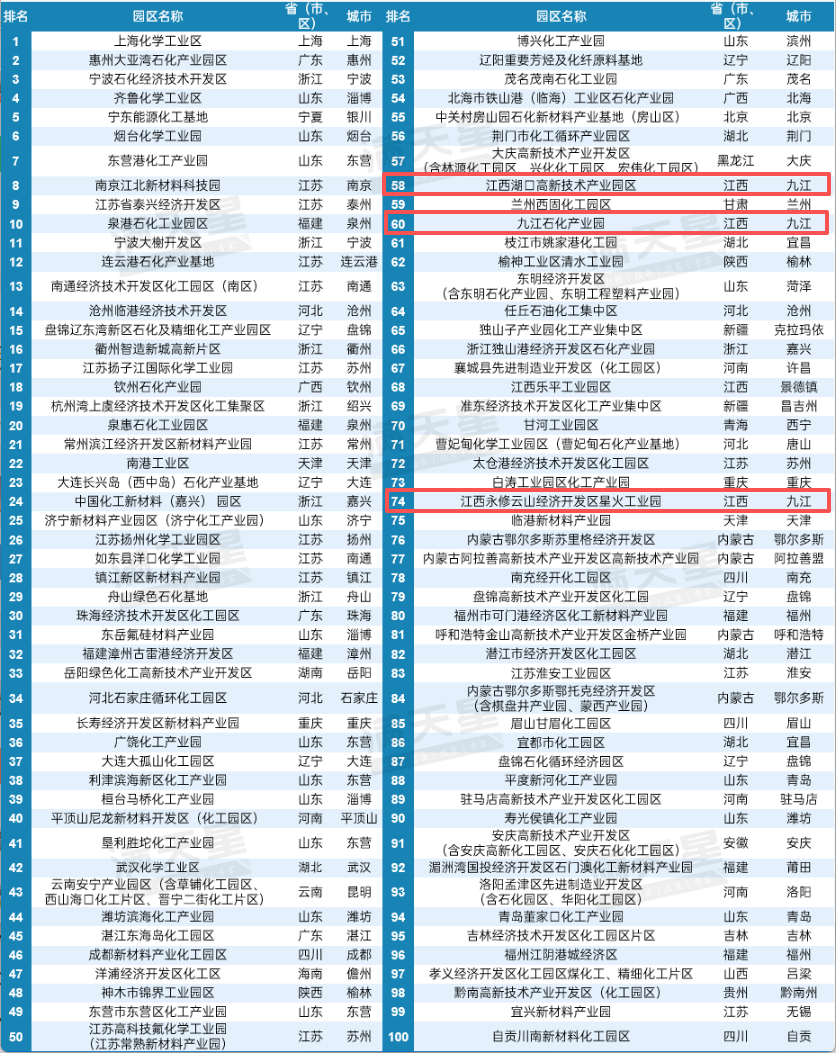 近日,赛迪顾问新材料产业研究中心重磅发布《2025化工园区高质量发展研究》报告及2025化工园区综合竞争力百强评价结果,我市湖口高新技术产业园区、九江石化产业园、永修云山经济开发区星火工业园入选全国化工园区综合竞争力百强。全省入选4家,其中我市3家。