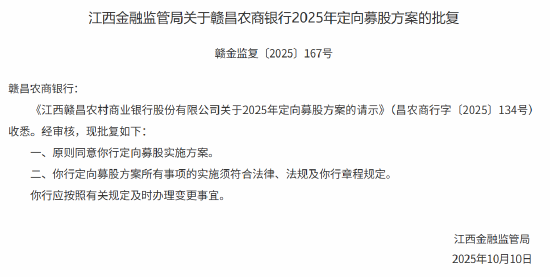 近日,江西省金融监管局正式发布批复,原则同意赣昌农商银行定向募股实施方案。
