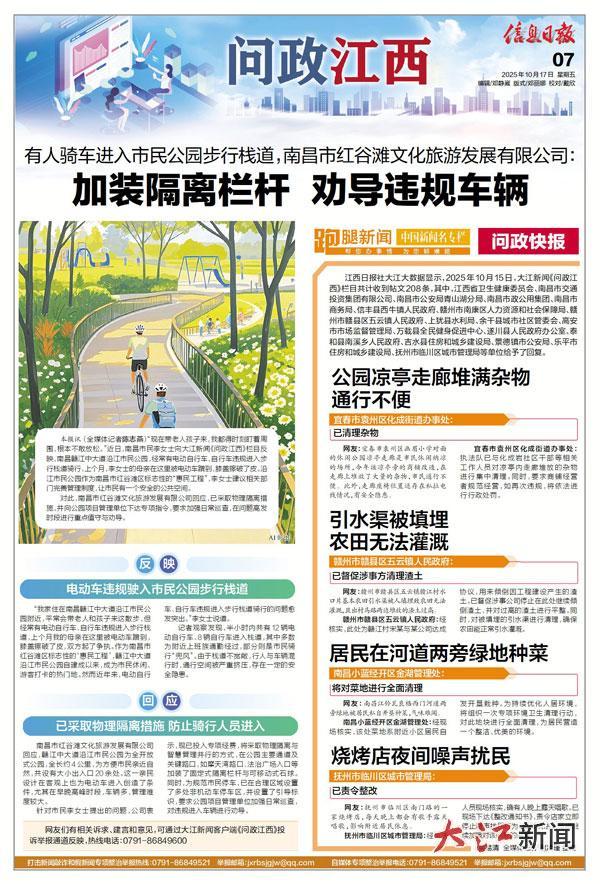 网友们有相关诉求、建言和意见,可通过大江新闻客户端《问政江西》投诉举报通道反映,热线电话:0791-86849600