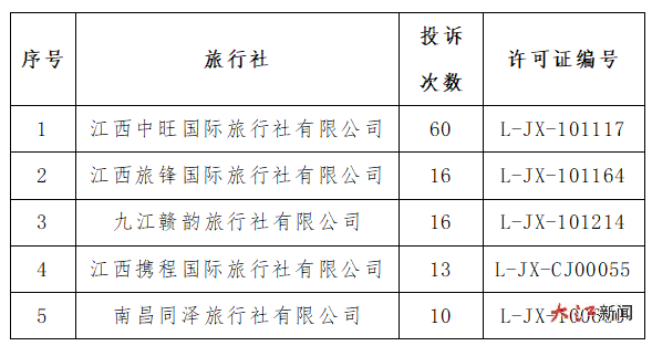 对此,江西省文化和旅游厅特别提醒广大游客、旅行社同业、在线旅游平台,选择投诉少、服务好、信誉高的旅行社参团或合作。