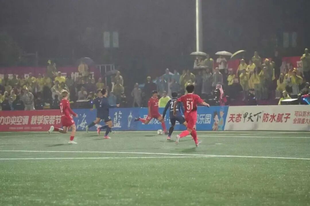 第69分钟,九江队26号肖子风罚出右侧角球,本场“客串”前锋的九江队6号聂皓天头槌破门,比分3:1,九江队继续领先。