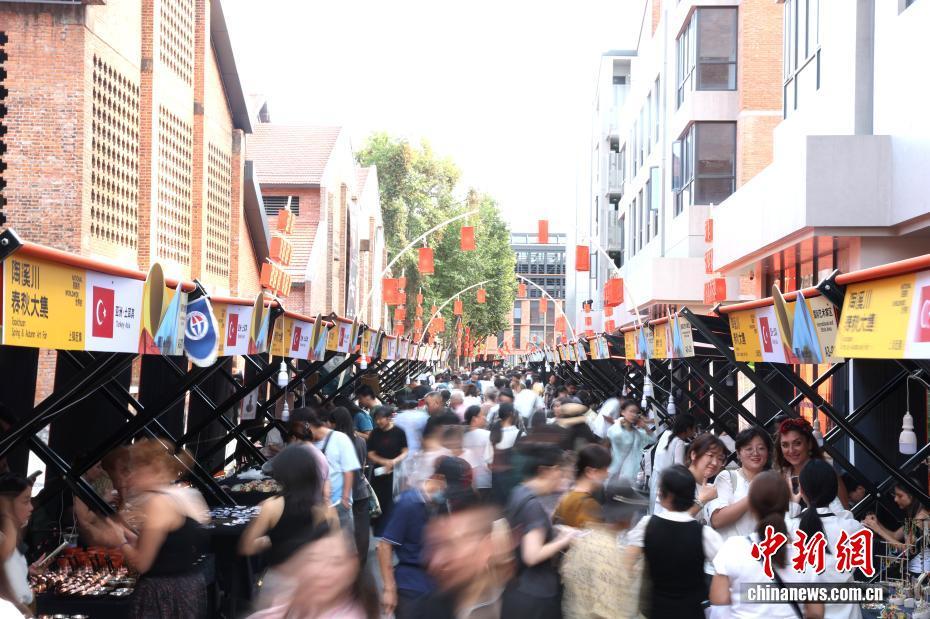 图为10月18日下午,江西景德镇陶溪川春秋大集现场人头攒动,各国“摊主”与游客互动,气氛热烈。中新社记者 刘占昆 摄