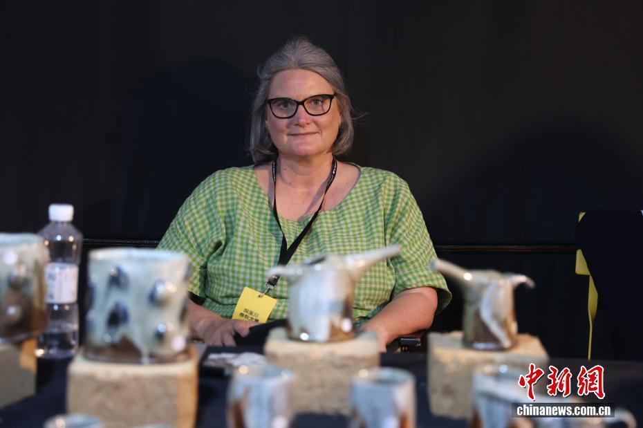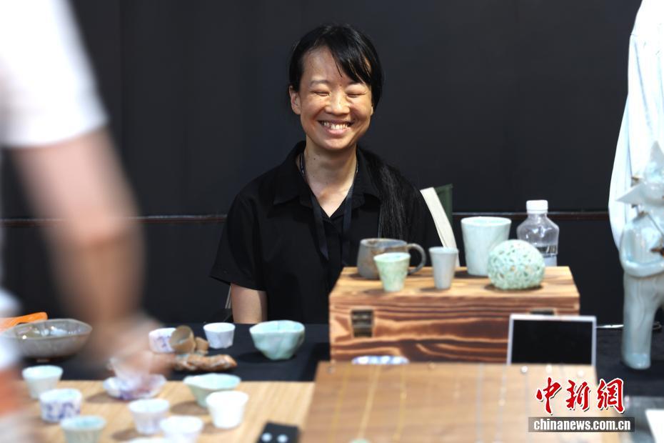 图为10月18日晚,再次来到景德镇的日本陶艺家福岡佑梨(Fukuoka Yuri)在摊位前笑眯了眼。作为春秋大集的常客,她那温暖而富有感染力的招牌式微笑,如同一座无声的桥梁,自然而然地拉近了与每一位访客的距离。中新社记者 刘占昆 摄