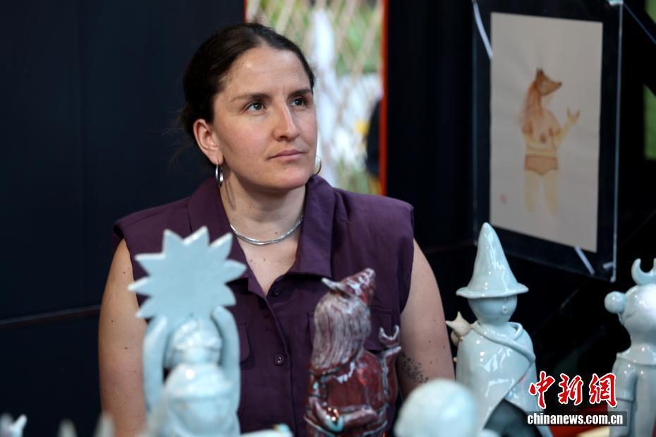 图为10月18日下午,智利陶艺家“喜悦”(ALEGRIA)凝视摊位前方,而她创作的各色人物陶塑仿佛正回望着她。这个由她亲手创造的微小“社群”,在喧嚣的市集中构筑了一个充满故事性的宁静角落。中新社记者 刘占昆 摄