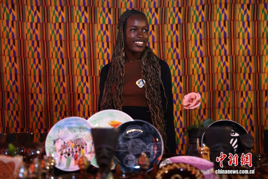 图为10月18日晚,在景德镇陶瓷大学留学的加纳女孩尤尼斯(Younis),将课堂所学的陶瓷技艺与家乡的文化图案相结合。她在市集上展示的这些作品,既是学业的实践,也是一次充满活力的文化展示。中新社记者 刘占昆 摄