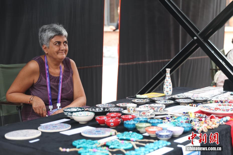 图为10月18日下午,土耳其陶艺家苏丹·卡拉奥鲁(Sultan Karaoglu)静坐于摊位前。对她而言,此行是一次朝圣之旅,她带来的伊斯兰风情陶瓷与那句“景德镇是瓷器的天堂”的坦言,道出了所有手艺人最纯粹的匠心与热爱。中新社记者 刘占昆 摄