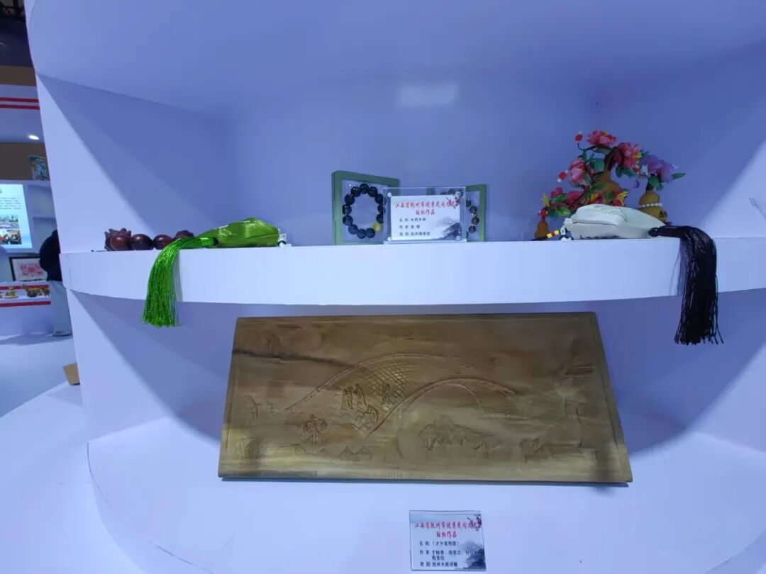 中国国际版权博览会是我国版权领域规格最高、影响力最大的专业展会,抚州作为全国首批民间文艺版权保护与促进试点地区受邀参展,携陶瓷、竹衣贴画、木雕、剪纸、铜片雕刻、竹烙画、瓷板画等18项特色展品精彩亮相,通过实物展示、创意演绎、宣传片轮播及非遗互动体验,向世界讲述“才子之乡”的现代文创故事。
