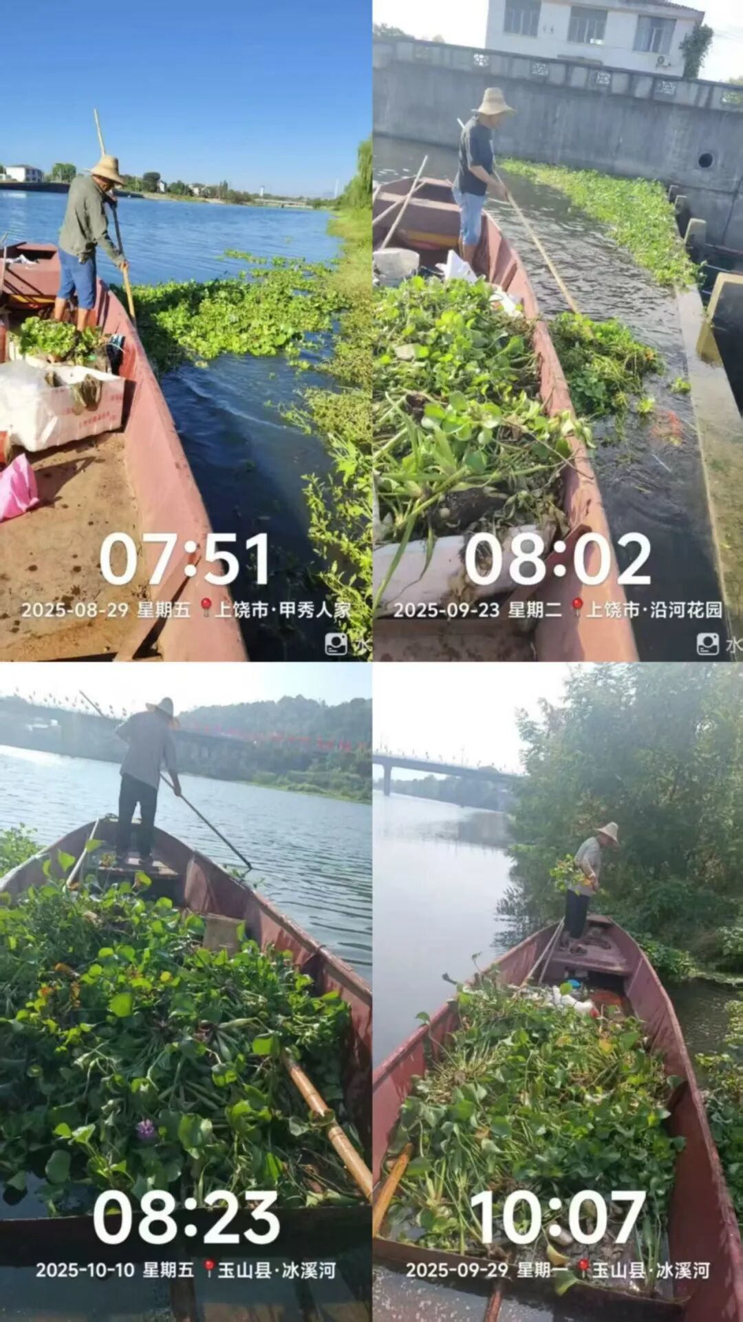 4、上饶市玉山县网友反映金沙溪下游水面有大量水葫芦影响环境。