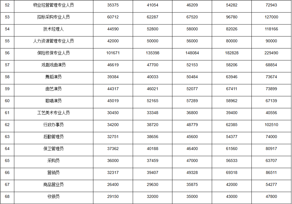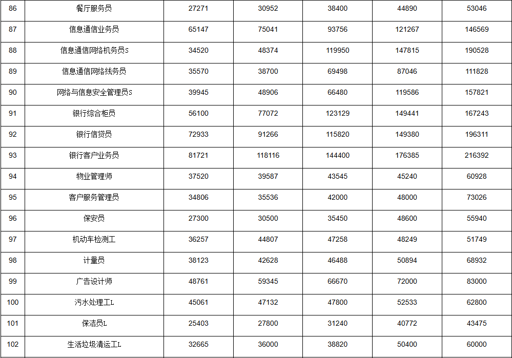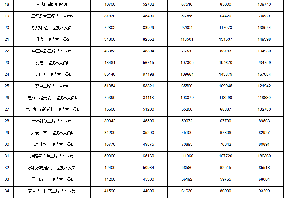 二、本次发布管理岗、专业技术岗、职业技能岗分等级的工资价位及不同职业154个。