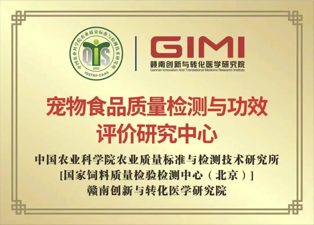 其中,宠物食品质量检测与功效评价研究中心,由中国农业科学院国家饲料质量检验检测中心(北京)与赣南创新与转化医学研究院联合共建。中心旨在以坚实的科学力量,重塑宠物食品品质标杆,将经过实证验证的技术体系转化为行业公认的“功效金标准”与“质量认证体系”,从源头破解低水平“内卷”,为行业筑牢安全基石。