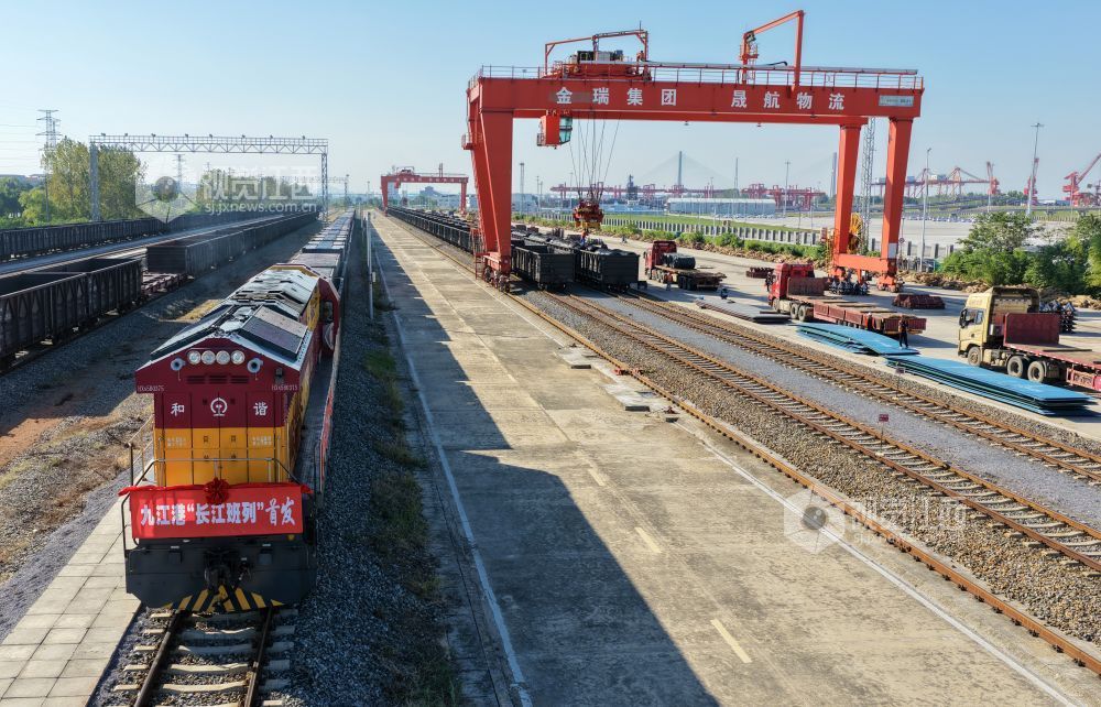 10月23日,一列满载玉米的“长江班列”从江西九江城西港铁路专用线上港作业区缓缓驶出,前往四川夹江、皂角铺等站,这是江西开行的首趟“长江班列”。这一通道的正式开启,标志着“长江班列”铁路运营段在覆盖四川、湖北、湖南后,成功延伸至江西,长江中游鄂、湘、赣三省全覆盖目标达成。 “长江班列”是依托长江黄金水道开行的铁水联运班列,采用“铁路运输+长江水运”的方式,通过铁路运输绕过三峡水闸“堵点”,大幅提升长江运输能力,使长江通道整体物流组织更高效。 视觉江西 胡国林 代建力 摄