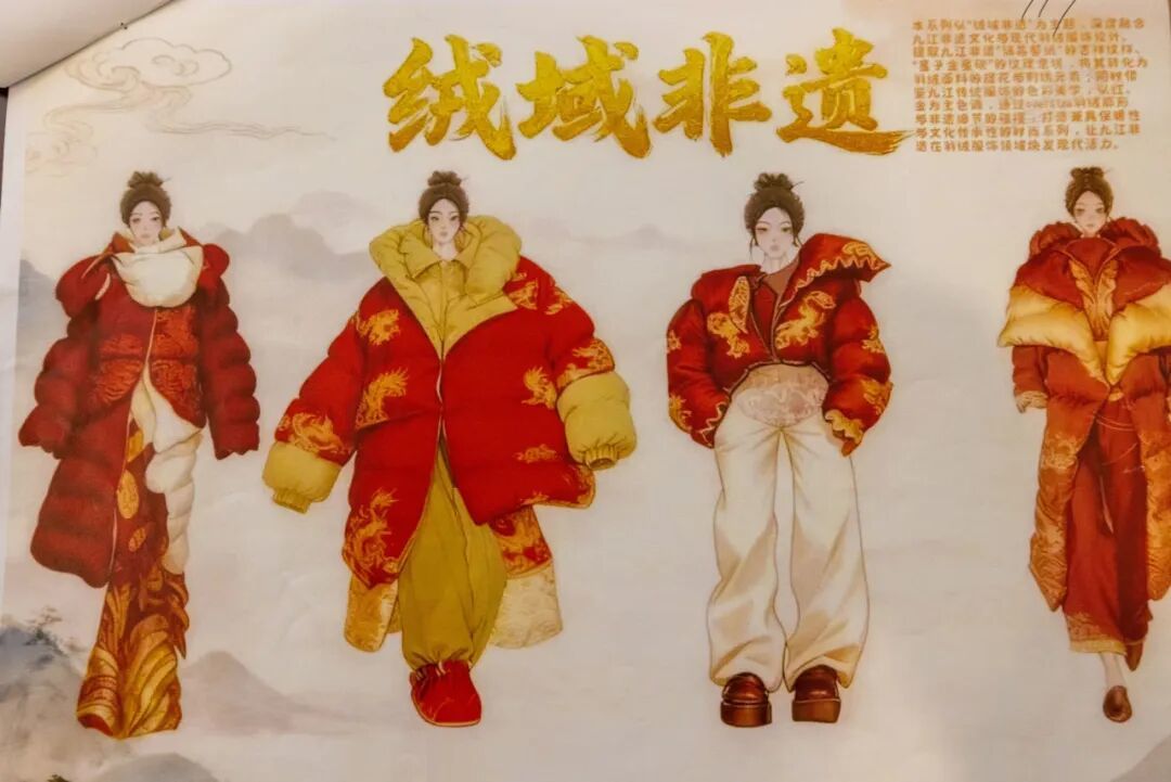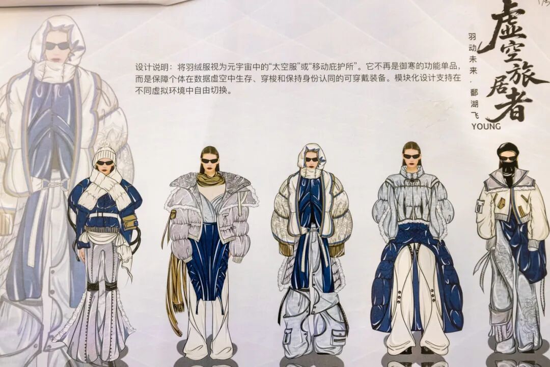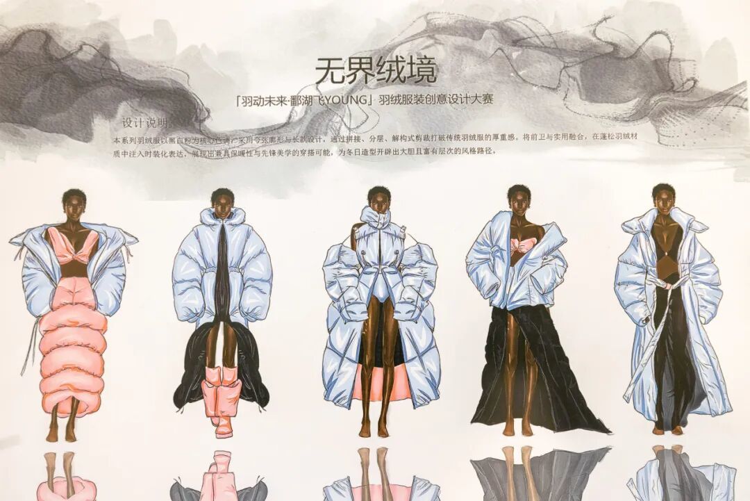 这些作品,有的将国潮元素玩出花,有的把未来科技感拉满,有的把鄱阳湖的生态之美穿在了身上……只能说,这届设计师,真的太会了! 他们用画笔和创意,完美诠释了什么叫“羽绒服,也可以是行走的时尚艺术品”!