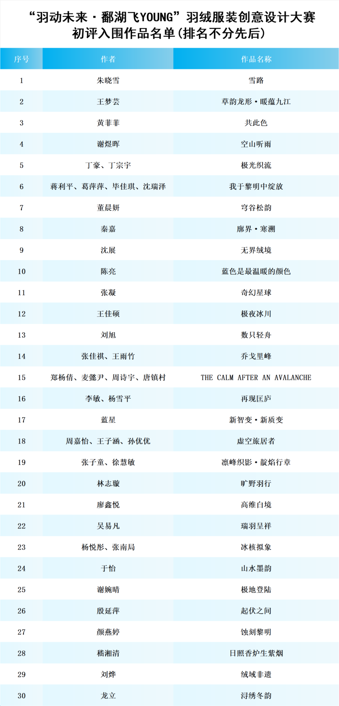 30强决赛入围名单