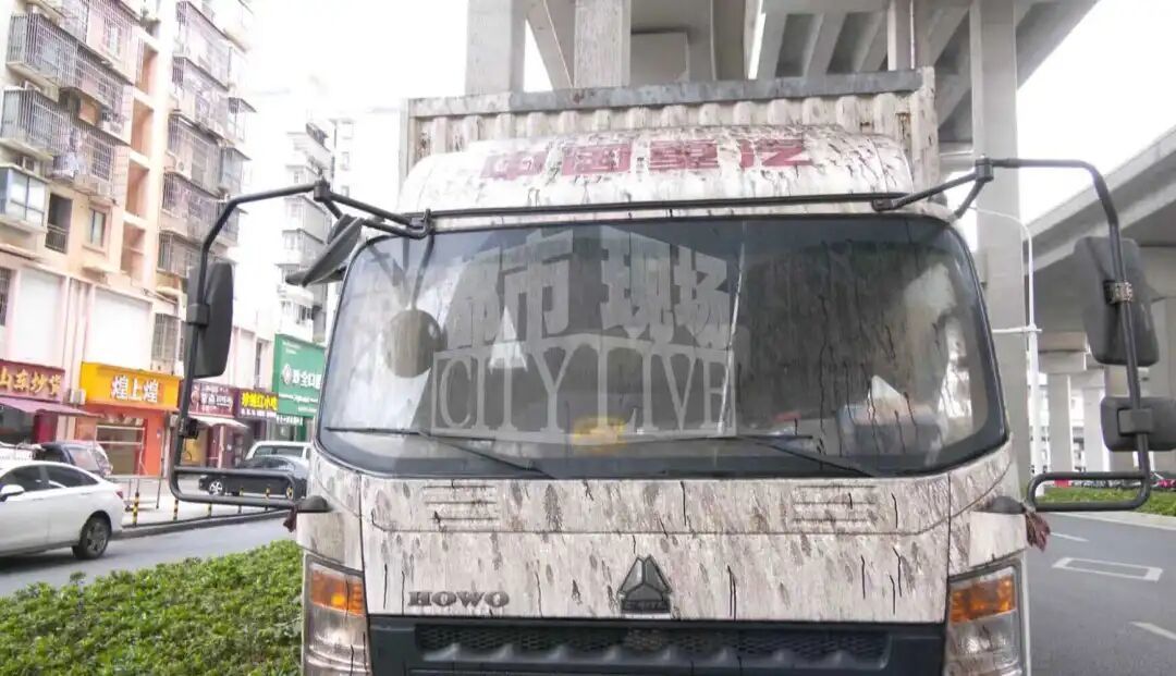 而在高架桥下,也有多台汽车也被“从天而降”的黑水给污染了,其中一台白色的货车几乎被染成了黑色。市民李先生表示,在事发之后,他就把汽车开到了洗车店里清洗,“但压根就清洗不掉”,因为这种沥青一样的物质已经融入了漆面,附近浅色的桥墩都快染成了黑色。