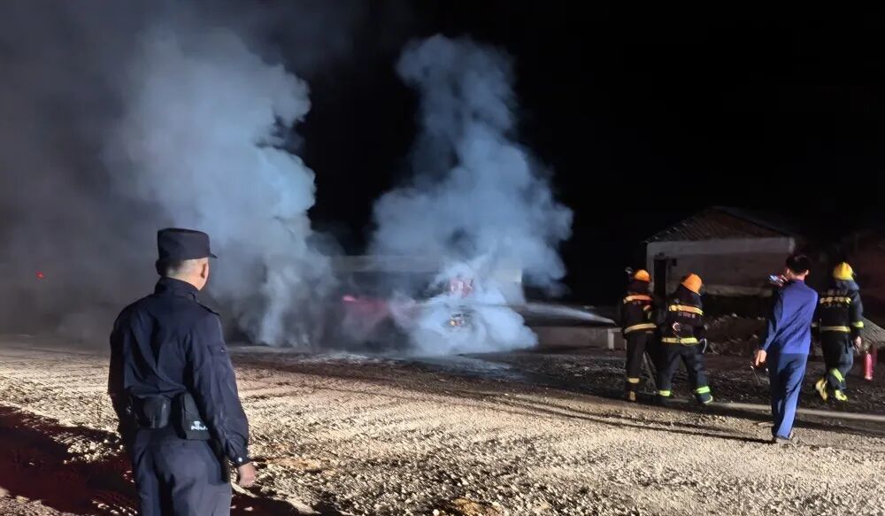 面对不断蔓延的火势,民警立即驱车赶往2公里外的加油站借取灭火器。当带着灭火器返回现场时,所内增援警力也已抵达。此时火势比之前更为猛烈,现场民辅警合力用完了8瓶灭火器,虽暂时压制住火势,却始终无法完全扑灭。就在民警准备继续寻找灭火器材时,消防车辆及时赶到现场。在消防队员专业水枪的喷射下,大火被成功扑灭。