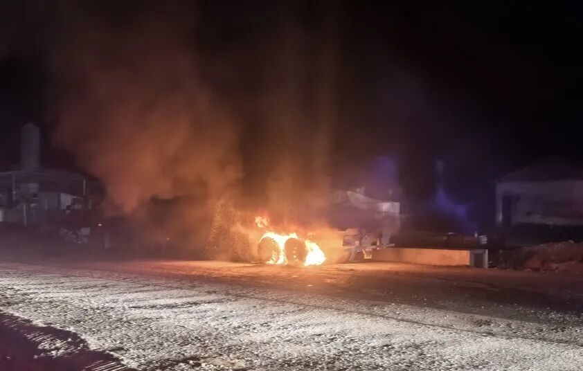 当巡逻车辆行驶至上甘山处往新余方向路段时,民警敏锐地发现前方一辆半挂车停在路边,四个左后轮已被熊熊烈火吞没,现场情况十分危急。