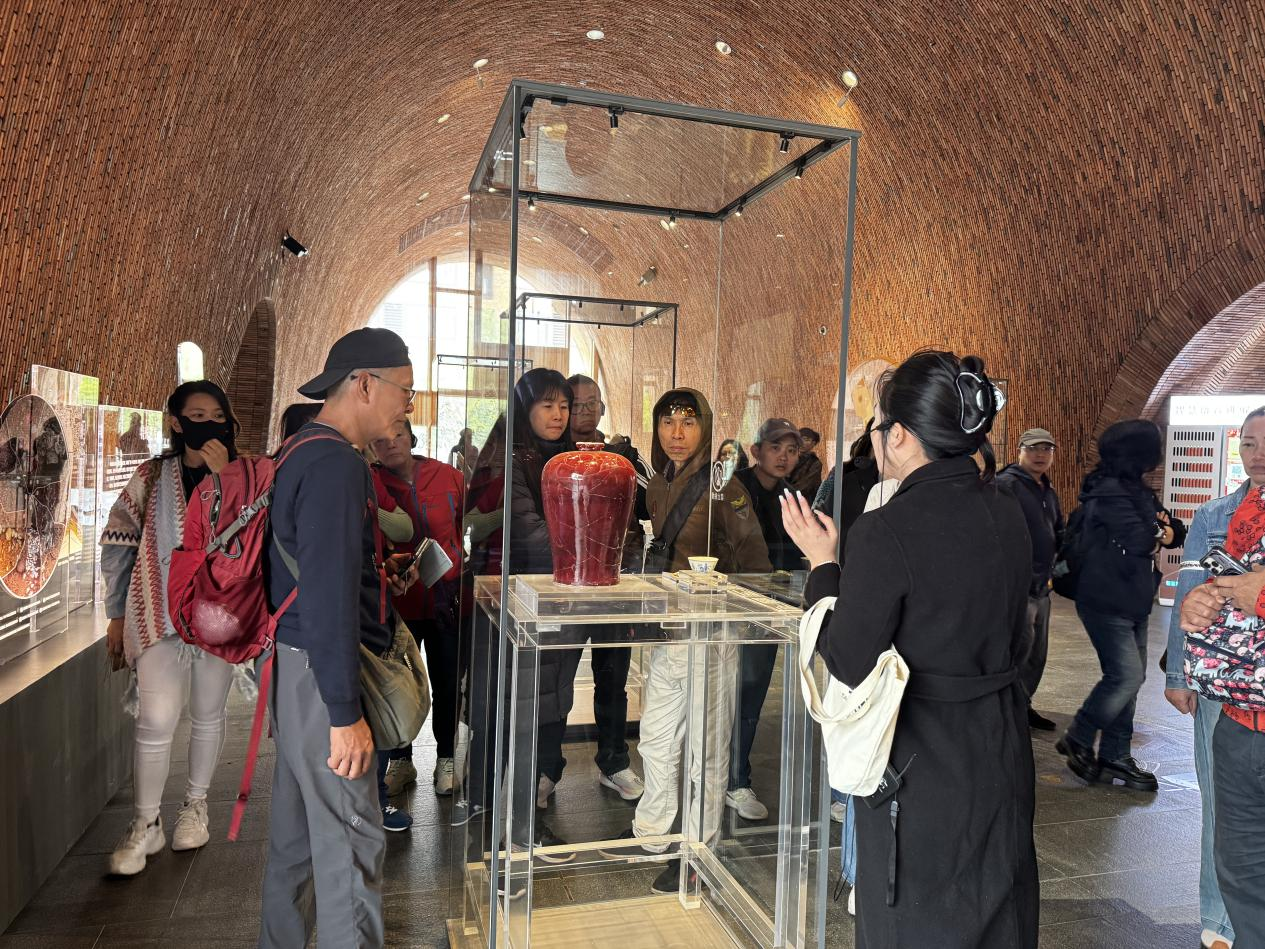 活动期间,台湾青年艺术家们走进景德镇中国陶瓷博物馆,聆听讲解员讲述景德镇千年制瓷史,感受陶瓷文化的深厚底蕴;漫步陶阳里历史文化街区,触摸斑驳的老墙与古窑遗址,仿佛穿越时空,见证昔日瓷都的繁华;探访浮梁古县衙,在古色古香的建筑中,了解古代景德镇的行政与民生,感受历史的厚重;打卡瓷宫,被绚丽多彩、由数万片陶瓷镶嵌而成的建筑震撼,惊叹于陶瓷艺术的无限可能;走进瑶里古镇,欣赏青山绿水间的古朴村落,感受陶瓷文化与自然山水的完美融合。每到一处,大家都认真聆听、积极提问,用镜头记录下所见所闻,深入领略景德镇陶瓷文化的多样魅力。台湾青年艺术家们还专程参访瓷博会展馆,从传统青花、粉彩到现代艺术瓷,馆内集中展示的陶瓷作品令人目不暇接,大家仔细鉴赏、轻声讨论,并与参展商交流创作理念与市场趋势。