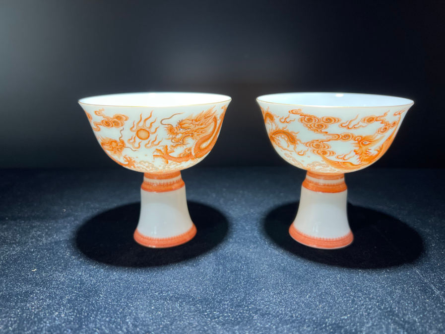 龙凤呈祥纹样的羅炳昇造高足大婚瓷。周佳/摄