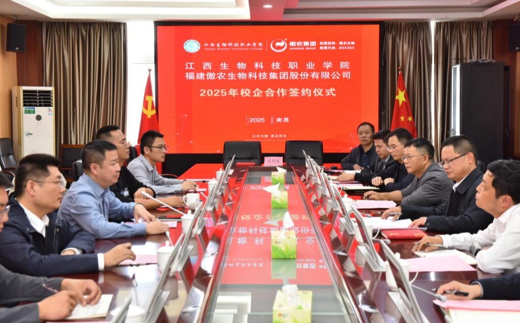 傲农集团作为行业领军企业,其产业发展新布局与学院畜牧兽医、动物医学等专业发展方向高度契合,为双方持续深化合作提供了强大动力。江西生物科技职业学院作为江西省唯一一所以生物科技为特色的高等职业院校,始终坚持“立足农业、服务区域”的办学定位,目前在校生规模已达1.4万余人,开设专业覆盖农牧业全产业链。与傲农集团的持续深度合作,是学院落实职业教育改革要求、服务乡村振兴战略的重要实践。未来,双方将继续携手共进,为培养更多高素质技术技能人才、推动畜牧业现代化发展作出新的更大贡献。(唐慕德)