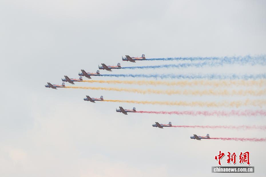 10月31日,江西南昌高新区,2025南昌飞行大会暨航空产业博览会在瑶湖机场开幕。当日,中国空军航空大学“天之翼”飞行表演队、中国商飞C919和C909编队、俄罗斯“勇士”飞行表演队、欧洲“空中骇客”飞行表演队先后登场,带来了一场场绚丽的飞行表演。图为中国空军航空大学“天之翼”飞行表演队在进行拉烟飞行表演。 中新社记者 刘力鑫 摄 来源:中国新闻网