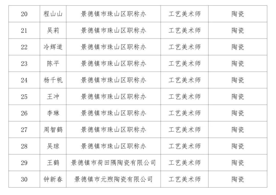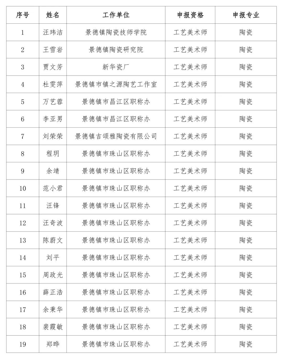 附件:2025年景德镇市工艺美术系列中级职称评审通过人员名单