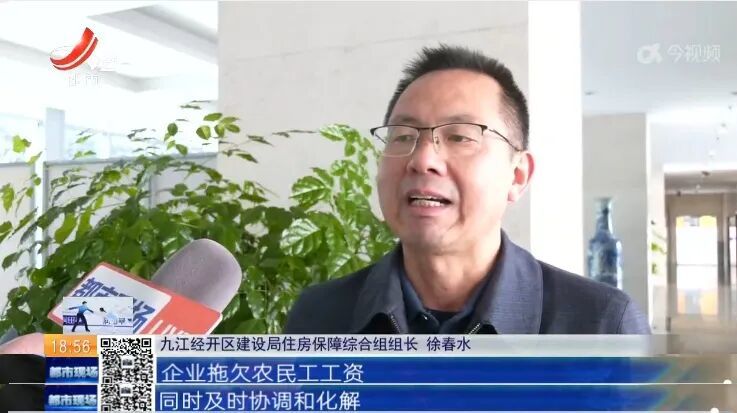 九江经开区建设局回复:九江经开区已成立工作专班,经过协调,项目会在春节前复工,开发商和施工单位将会筹措部分资金和一些项目房产,支付和抵押给施工方,交房前兑现拖欠的农民工工资。