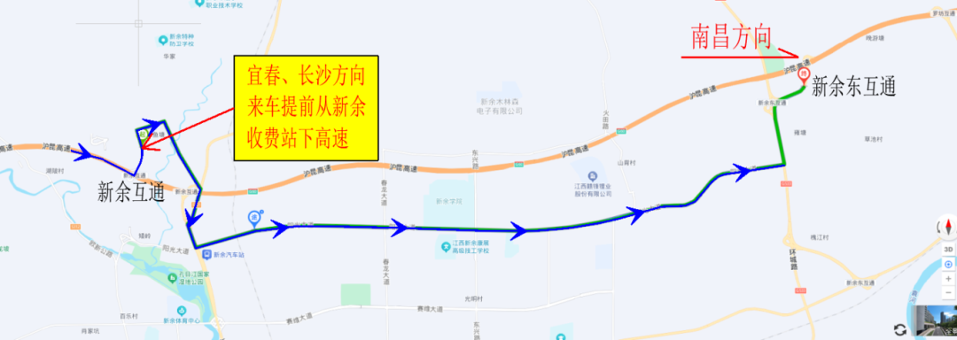 ①G60沪昆高速宜春、长沙方向(由西往东)来车往新余东绕行线路: