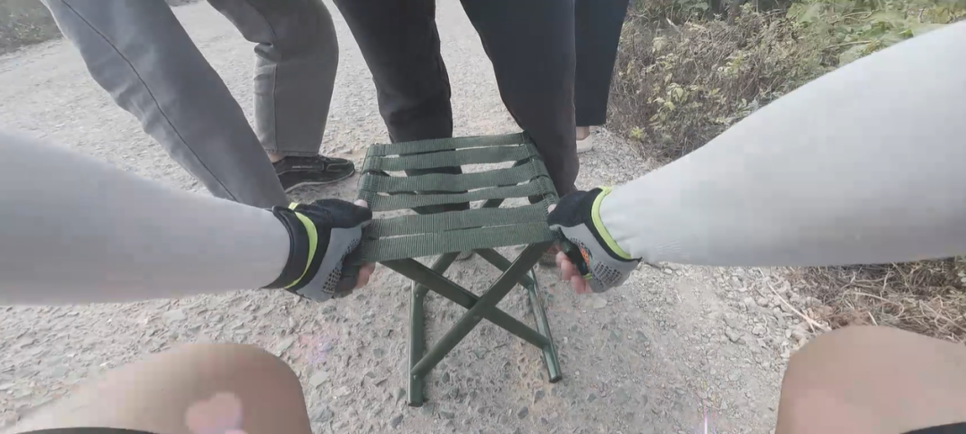 让老人平稳安置在小椅子上