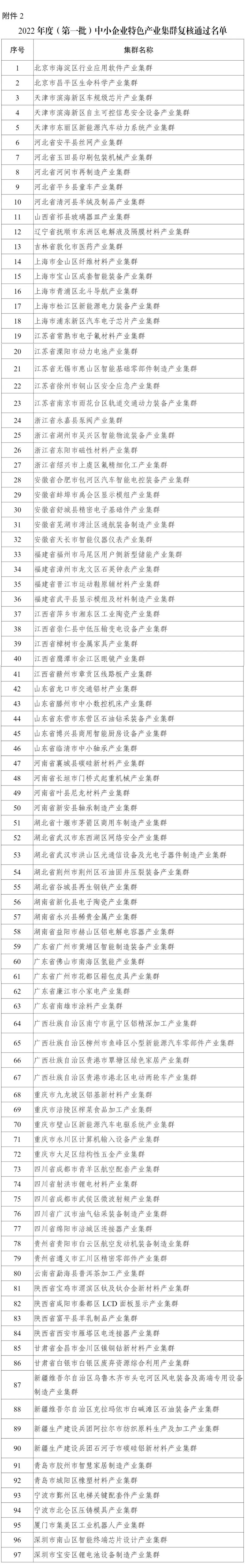 2.2022 年度(第一批)中小企业特色产业集群复核通过名单