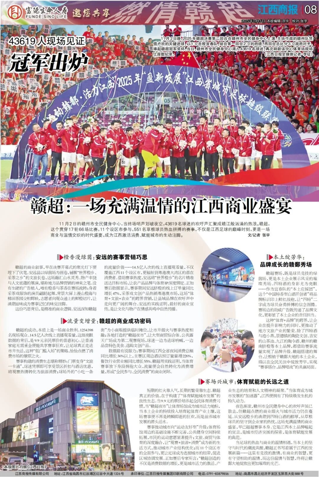 当足球的热血与商业的温情相遇,当本土的坚守与时代的潮流共振,赣超正书写着属于江西的发展新篇——这里有竞技的激情,有商业的智慧,更有守望相助的温情,而这份温情与智慧,终将让赣鄱大地绽放出更加璀璨的光芒。
