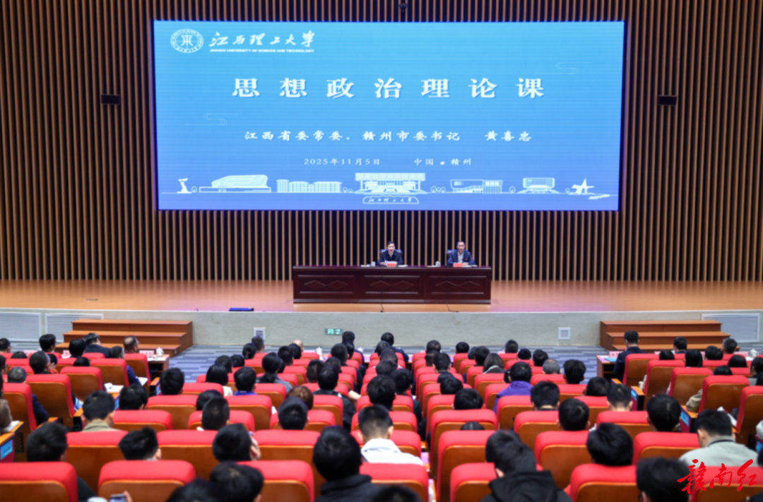 11月5日,市委书记黄喜忠来到江西理工大学讲思想政治理论课。他围绕深入学习贯彻党的二十届四中全会精神,结合国际国内形势和赣州发展实际,和师生一起交流,勉励大家坚定理想信念、锤炼过硬本领、涵养优良品德,努力在中国式现代化建设中绽放青春光彩。