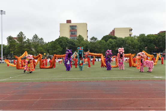 开幕式亮点频出,“画龙点睛”仪式与“龙腾狮跃”表演吸睛无数。学院党委书记姚丽华带领班子成员为瑞龙点睛,将“勇敢、奋进、团结”的“龙”之精神注入校园体育文化;舞龙舞狮表演气势恢宏,展现中华优秀传统文化魅力,精彩的大型广播操与情景表演形成“体育+文化”的双重育人效果。