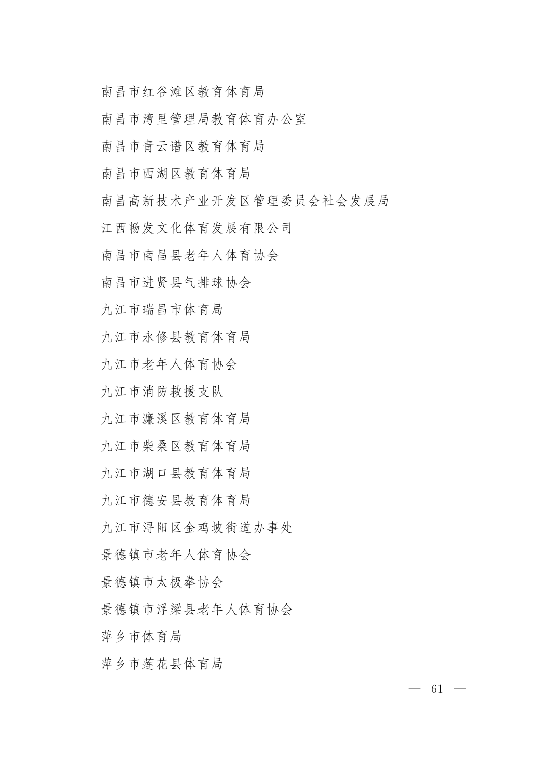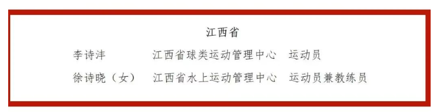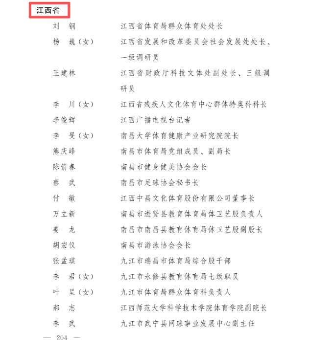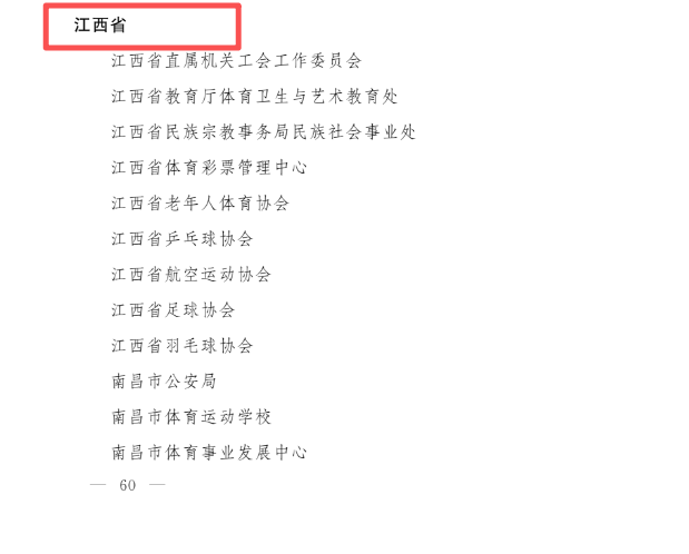 2021—2024年度全国群众体育先进单位、先进个人和全国体育系统先进集体、先进个人表彰大会11月10日在广州举行,江西有88个全国群众体育先进单位、60名先进个人,2个全国体育系统先进集体、2名先进个人受到表彰,分别是: