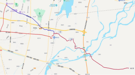 (蓝色代表原线路,红色代表调整后线路)