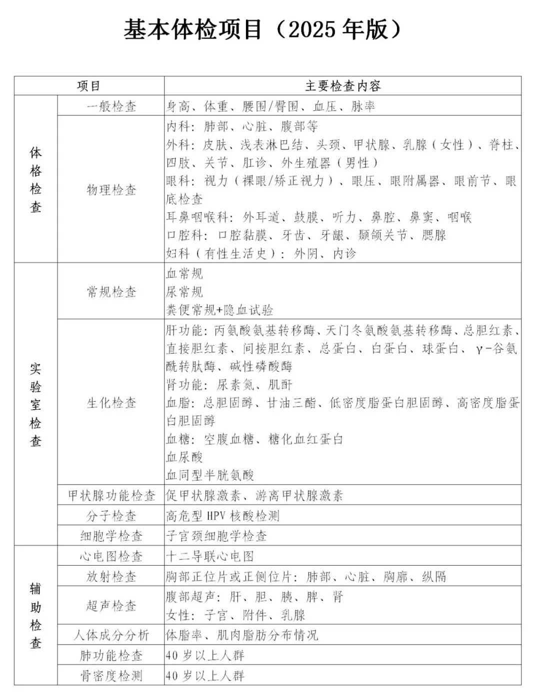 来源:《成人健康体检项目推荐指引(2025年版)》