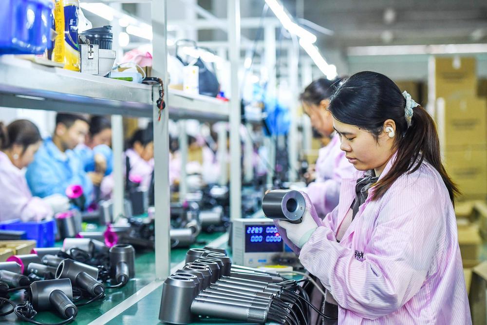 近日,铜鼓县大塅镇拓林电子厂的员工在赶制吹风机等产品。近年来,该县将“家门口的就业车间”建设作为改善民生福祉的重要举措,通过搭建“园区+工坊”平台、发展劳动密集型企业、引导企业进镇入村开办“微工厂”等方式,不断畅通就业渠道,助力群众实现就业增收。(本报记者 周 亮 摄)