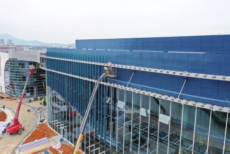 11月12日,峡江县“五馆一中心”项目建设现场,工人在对外墙钢梁进行施工作业。项目建成后,将提升全县公共文化服务水平,满足人民群众日益增长的文体需求,对助推当地社会经济高质量发展具有重要意义。宋靖辉摄