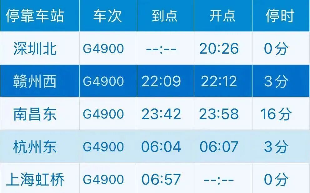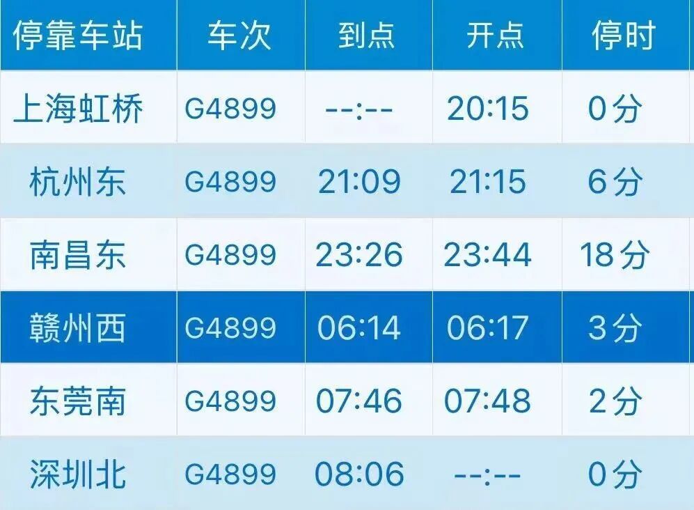 铁路部门在2025年11月11日至12月25日期间,每周二、三、四(自始发站)增开深圳北往返上海虹桥G4900次、G4899次夜间高铁动卧列车,经停赣州西站,为赣州与沪深两大城市往来提供高铁“夕发朝至、晨发便捷”的出行新方式。