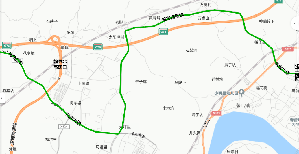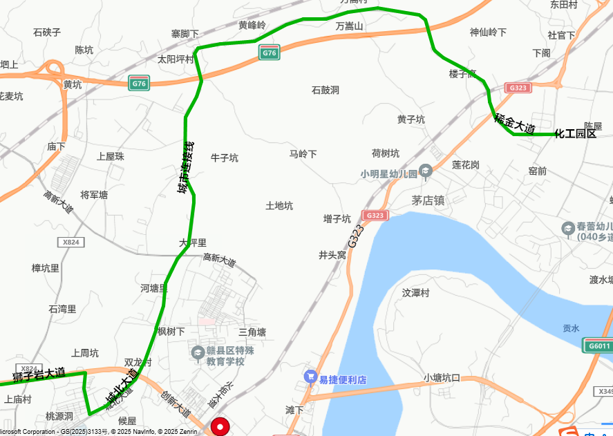 3、赣县东高速收费站—茅店东田段—稀金大道—化工园区。