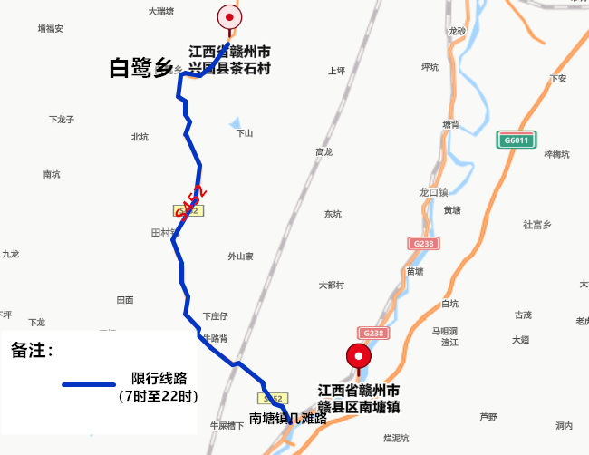 G238国道南塘镇与兴国龙口交界处至赣县与于都交界处(公里桩号:K359+408-K399+082);