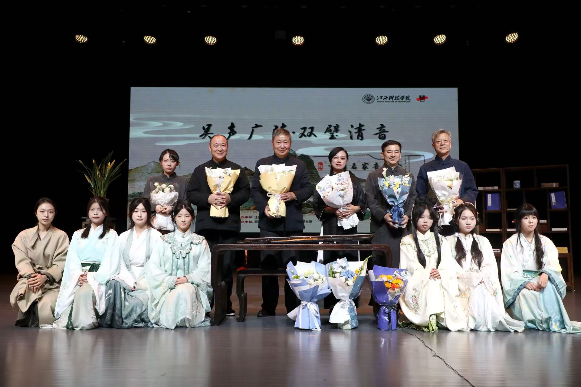 11月14日晚,江西科技学院沙龙舞台琴音缭绕,“吴声广陵・双璧清音”古琴名家音乐会在此举行。这场“传统文化进校园”活动以古琴为媒搭建文化传承桥梁,让师生及古琴爱好者们沉浸式感受中华优秀传统文化的博大精深。