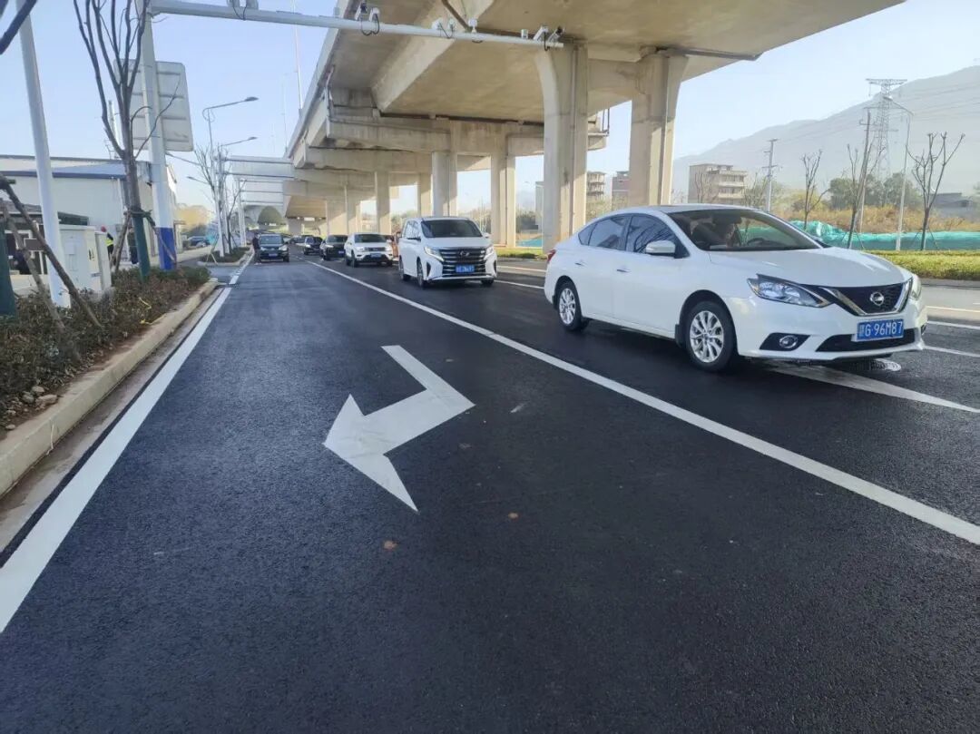 此次通车的连接线项目北起东篱路,南至快速路一期4号匝道西侧规划路,路线全长约2.9公里。工程新建地面辅道2.3公里、续建地面辅道0.6公里,并新建了一对3号匝道。地面辅道按城市主干路标准建设,设计速度为40公里/小时,采用双向6车道布局,确保了通行能力与效率。
