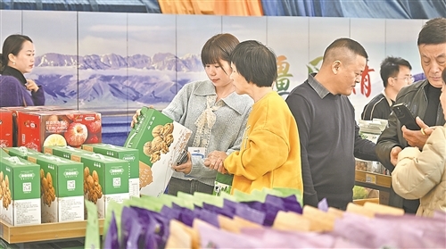 11月27日,第三届新疆克州特色产品展销会在南昌市红谷滩区开幕,来自克州的40家企业参展,280余种优质农特产品集中亮相,吸引众多市民前来选购。本报全媒体记者 蔡铖歌摄