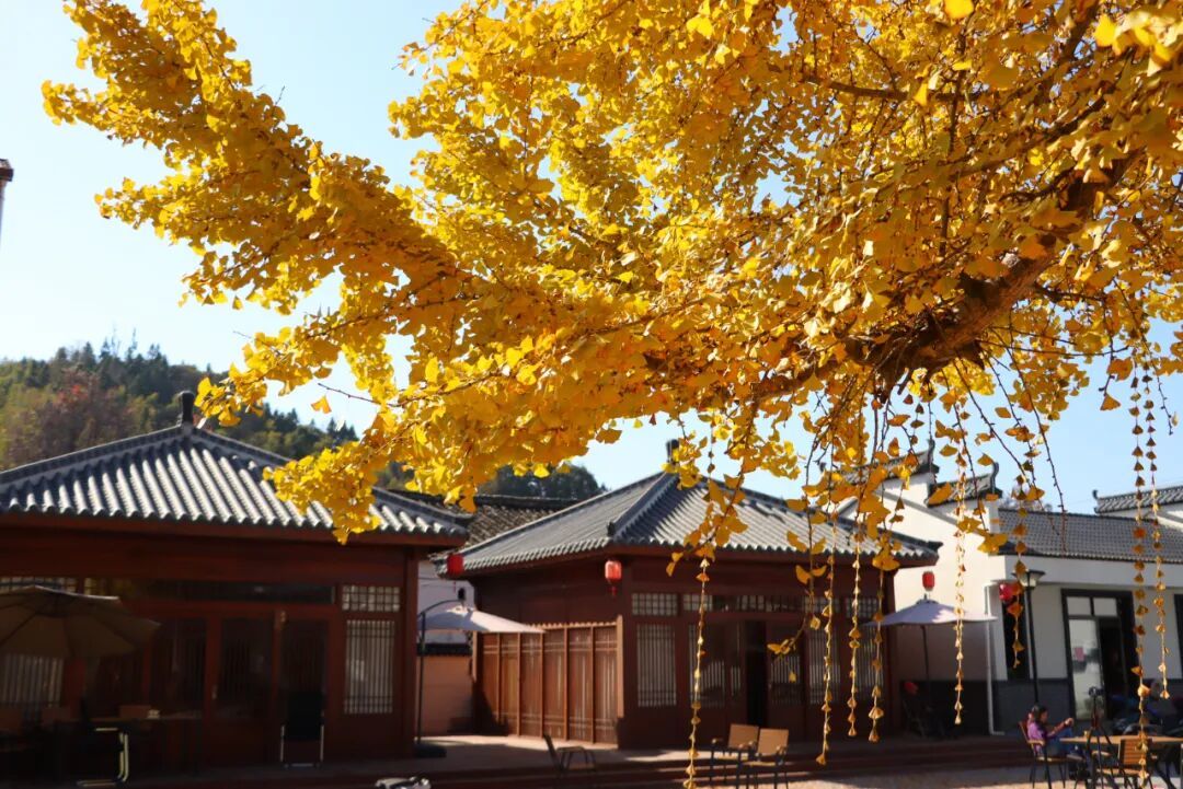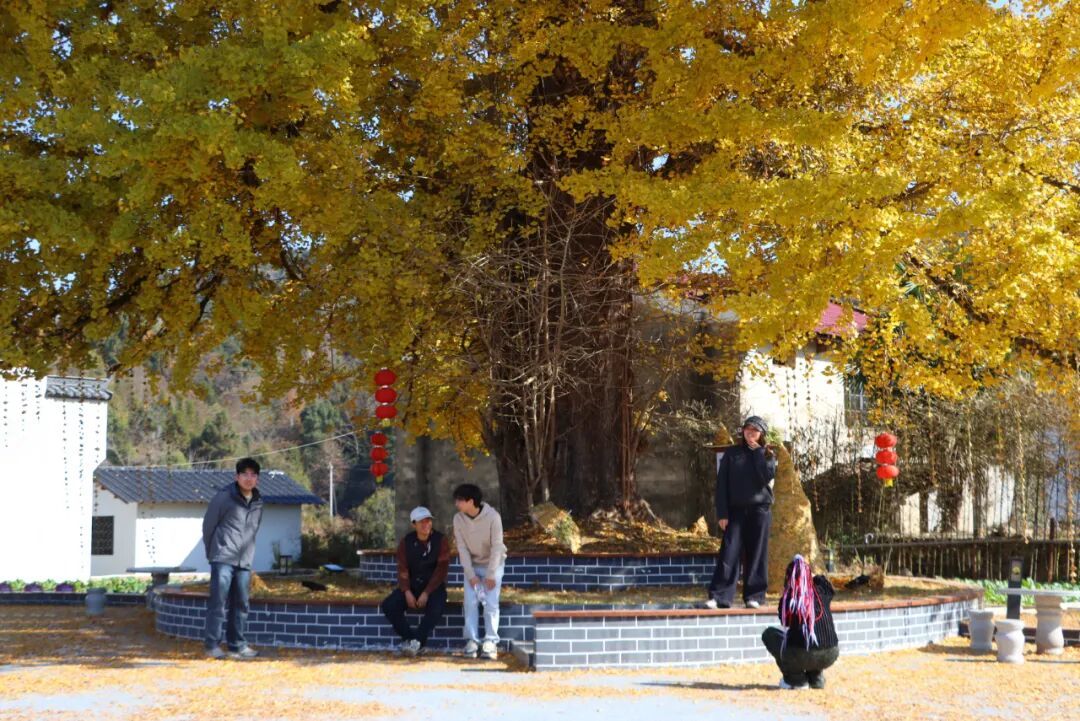 此刻,灿金的古树与白墙黛瓦的民居相映成画,勾勒出一幅动人的冬日山居图。有人拾起一枚落叶珍藏留念,有人入住民宿,在庭院中静观叶落成诗。孩子们的笑声在金色的光影里跳跃,一切都沉浸在宁静而美好的氛围中。