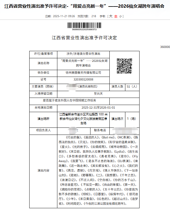 演出场所:江西省新余市渝水区天仙路西100米(新余市仙女湖七夕文化旅游度假区停车场)