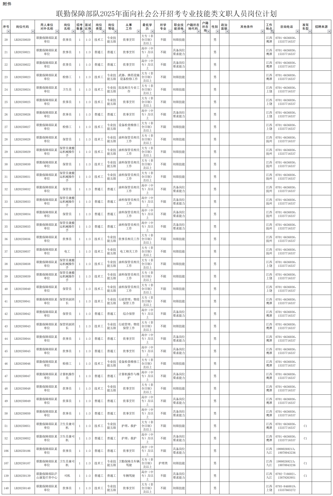 根据《中国人民解放军文职人员条例》及有关政策规定,现将联勤保障部队2025年专业技能类文职人员公开招考有关事项公告如下: