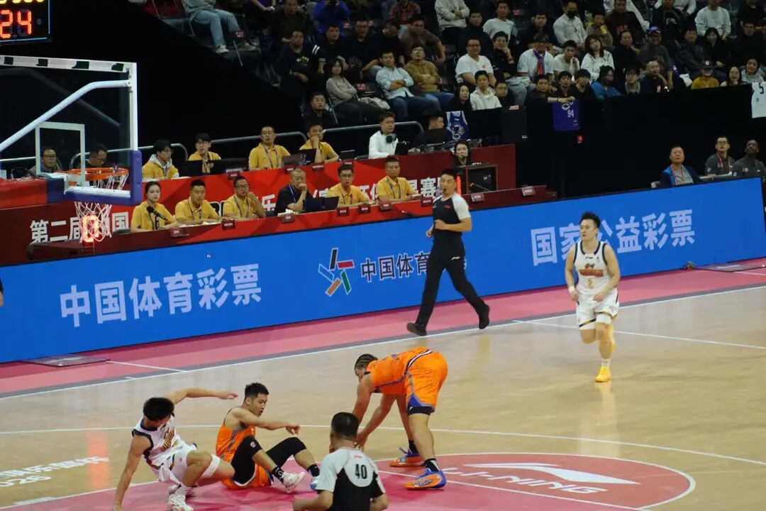 下半场,两队易边再战。上海久事队洛夫顿在失去平衡的情况下打成2+1,率先得分。四川队下半场加强防守,但无奈上海队老将弗格化身中锋,抢下前场篮板后强势打进。四川队李金效不甘示弱,防下怀特赛德的投射,立刻转换三分打进。