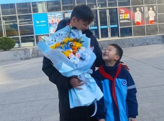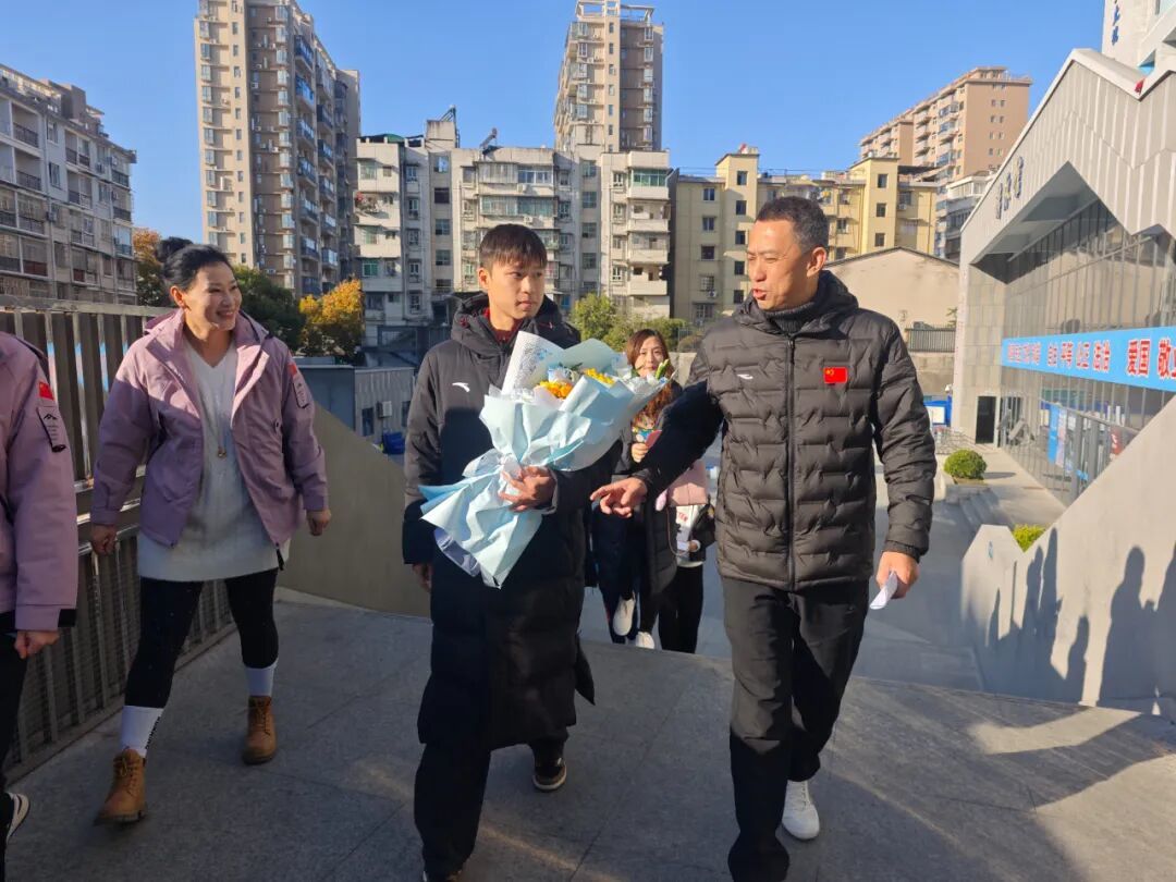 当天上午,当程玉洁、付子乐一踏进校园大门,就受到了师生们的夹道欢迎。掌声、欢呼声此起彼伏,鲜花与笑脸交织,因两位泳坛骄子的归来,现场气氛瞬间被点燃。