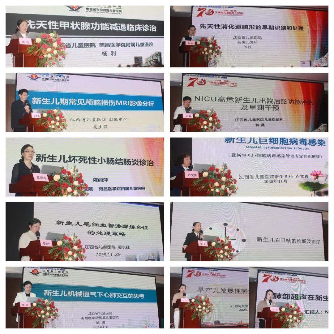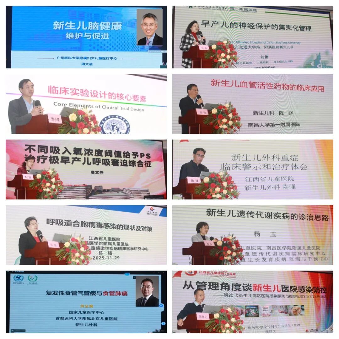 会议特邀广州医科大学附属妇女儿童医疗中心周文浩教授、西安交通大学第一附属医院刘俐教授、南昌大学公共卫生学院周小军教授、南昌大学第一附属医院陈晓教授、江西省妇幼保健院唐文燕教授、以及来自江西省儿童医院的陶强、陈强、杨玉、黄金狮、陈修文、杨利、陈快、吴主强、钟霞、陈丽萍、卢文青、晏长红、李琳、喻聪教授及付芳、肖莹主管护师等分别就《新生儿脑健康维护与促进》《早产儿神经保护的集束化管理》《临床试验设计的核心要素》《新生儿血管活性药物的临床应用》《不同吸入氧浓度阈值给予PS治疗极早产儿呼吸窘迫综合征》《新生儿外科重症的临床警示和治疗体会》《呼吸道合胞病毒感染的现状及对策》《新生儿期遗传代谢病诊治思路》《复发性食管气管瘘与食管肺瘘》《从管理角度谈新生儿院感防控》《先天性甲状腺功能减退临床诊治》《先天性消化道畸形的早期识别和处理》《新生儿期常见颅脑损伤MRI影像分析》《NICU高危新生儿出院后脑功能评估及早期干预》《新生儿坏死性小肠结肠炎诊治》《新生儿巨细胞病毒感染》《新生儿毛细血管渗漏综合征的处理策略》《新生儿百日咳诊治》《新生儿机械通气下心肺交互的思考》《早产儿发展性照护实践与管理》《肺部超声在新生儿护理中的应用》专题进行了精彩授课,课程内容丰富、精彩纷呈。